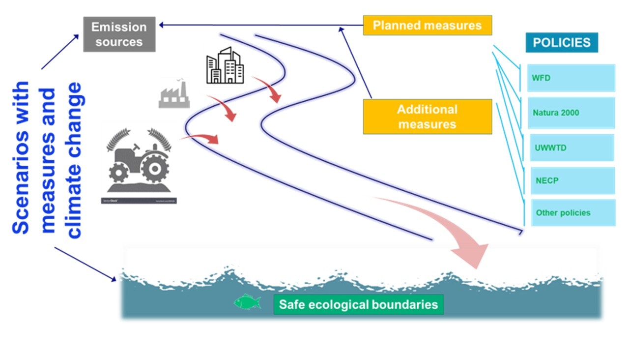 Measures to reduce inputs and transport of nutrients were considered. Current nutrient reduction policies appeared to be insufficient to achieve safe ecological boundaries in the Rhine and Elbe catchments. Climate change leads to considerable changes in river flows and thereby nutrient loads to downstream ecosystems.