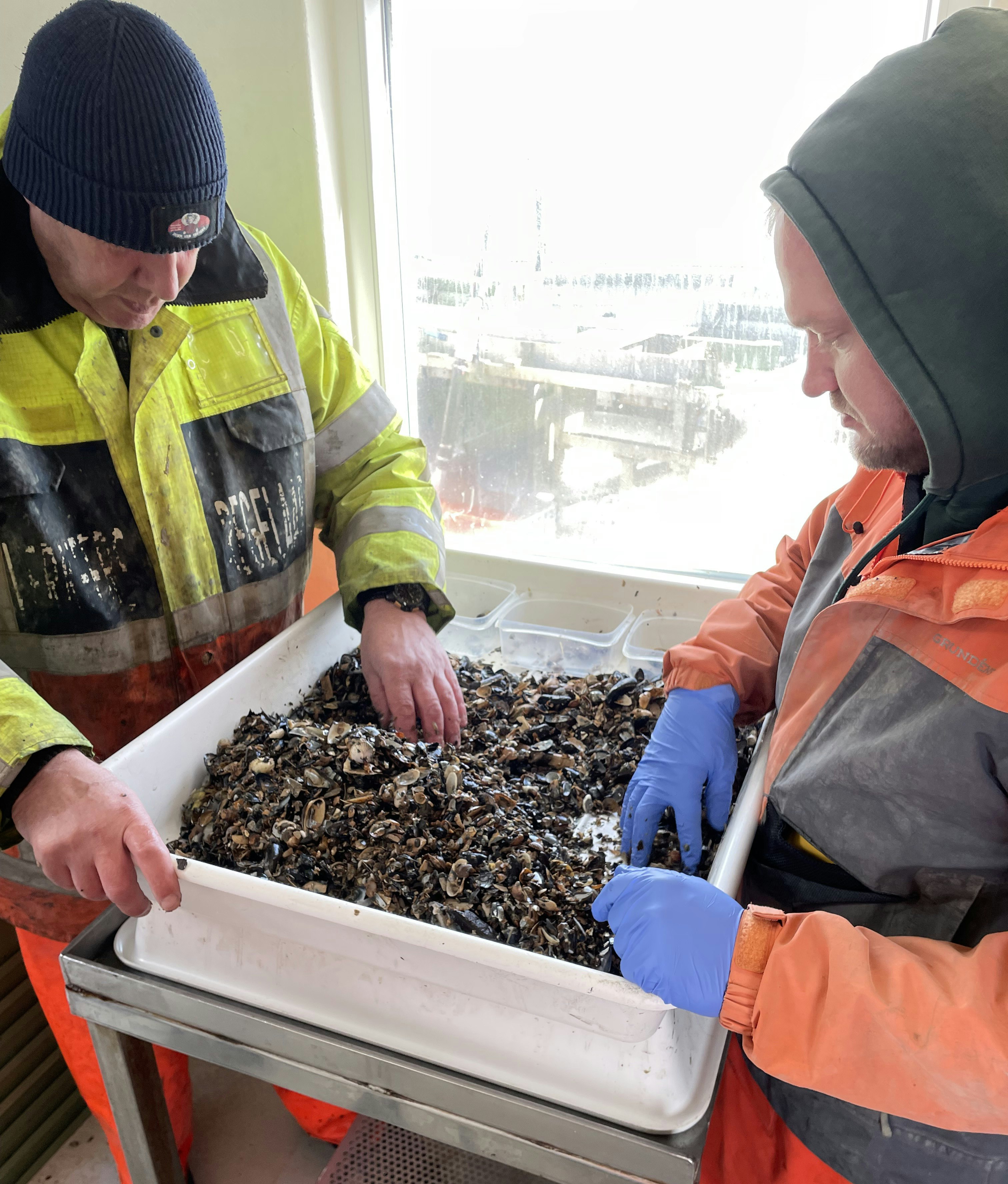 Between the sand and mud, the team mainly finds Baltic tellins, soft-shell clams and small crabs. Occasionally, non-native species such as the American surf clam are also found. Any fish are immediately returned to the water.