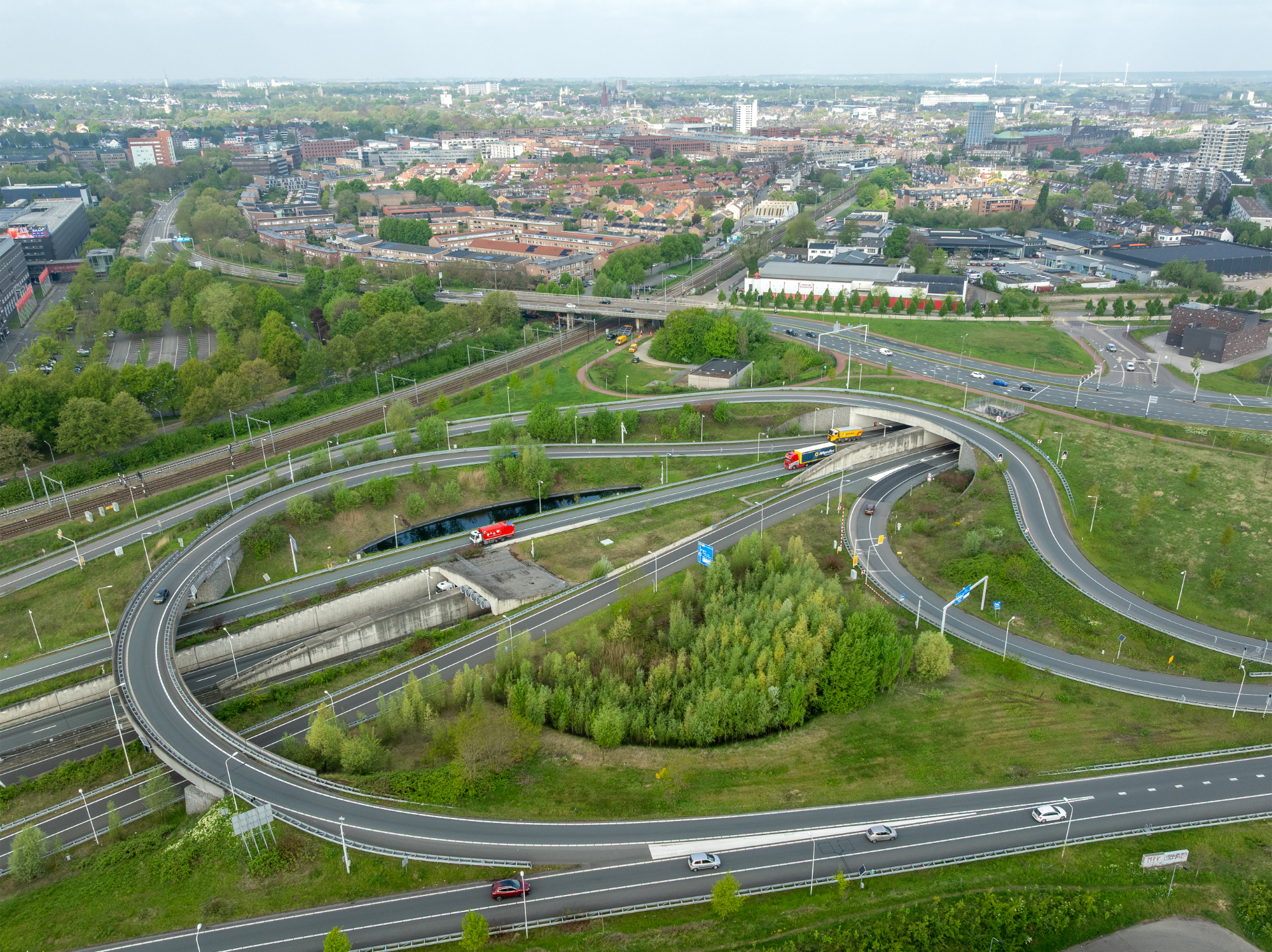 The tunnel opened in 2016, significantly improving traffic flow, accessibility and quality of life in Maastricht. Thanks to the tunnel, 80% of all traffic now travels underground rather than through Maastricht. What’s more, there are now no more traffic lights on the Amsterdam-Marseille route. A park-like environment has been created on the site of the old A2/N2 motorway: the Groene Loper (Green Carpet). This is a recreational area where 1,800 trees have been planted, connecting the east and west of Maastricht.
