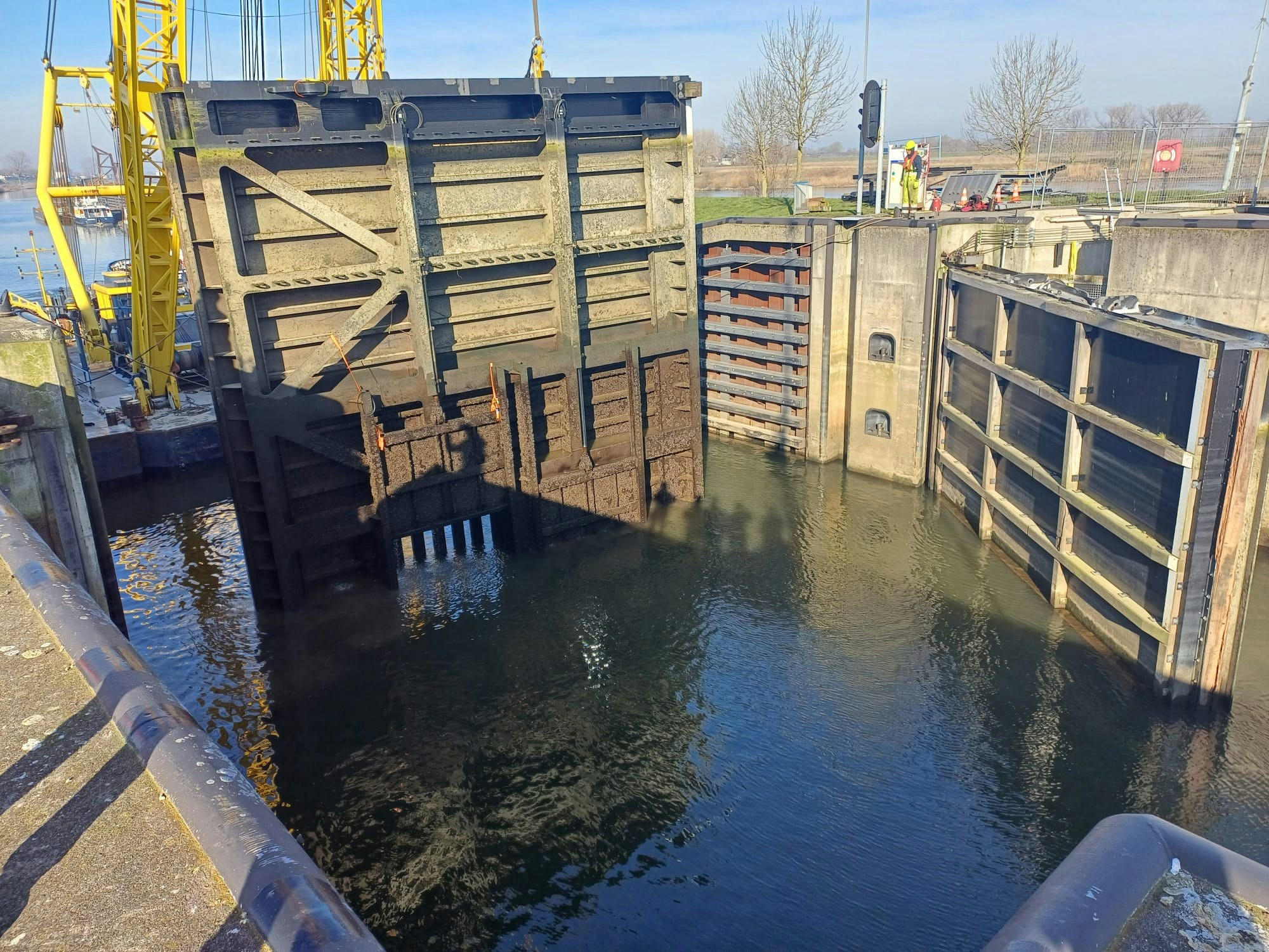 Als de noordelijke deur gerepareerd is, worden beide deuren vervoerd naar sluis Lith en daar gemonteerd. ‘Daarna moeten we de deuren natuurlijk testen,’ geeft Thuijls aan. ‘Ook halen we de keerschotten uit de sluis, die nu de fysieke kering overnemen van de sluisdeuren. Als alles naar behoren werkt kan het scheepvaartverkeer weer worden opgestart.’
