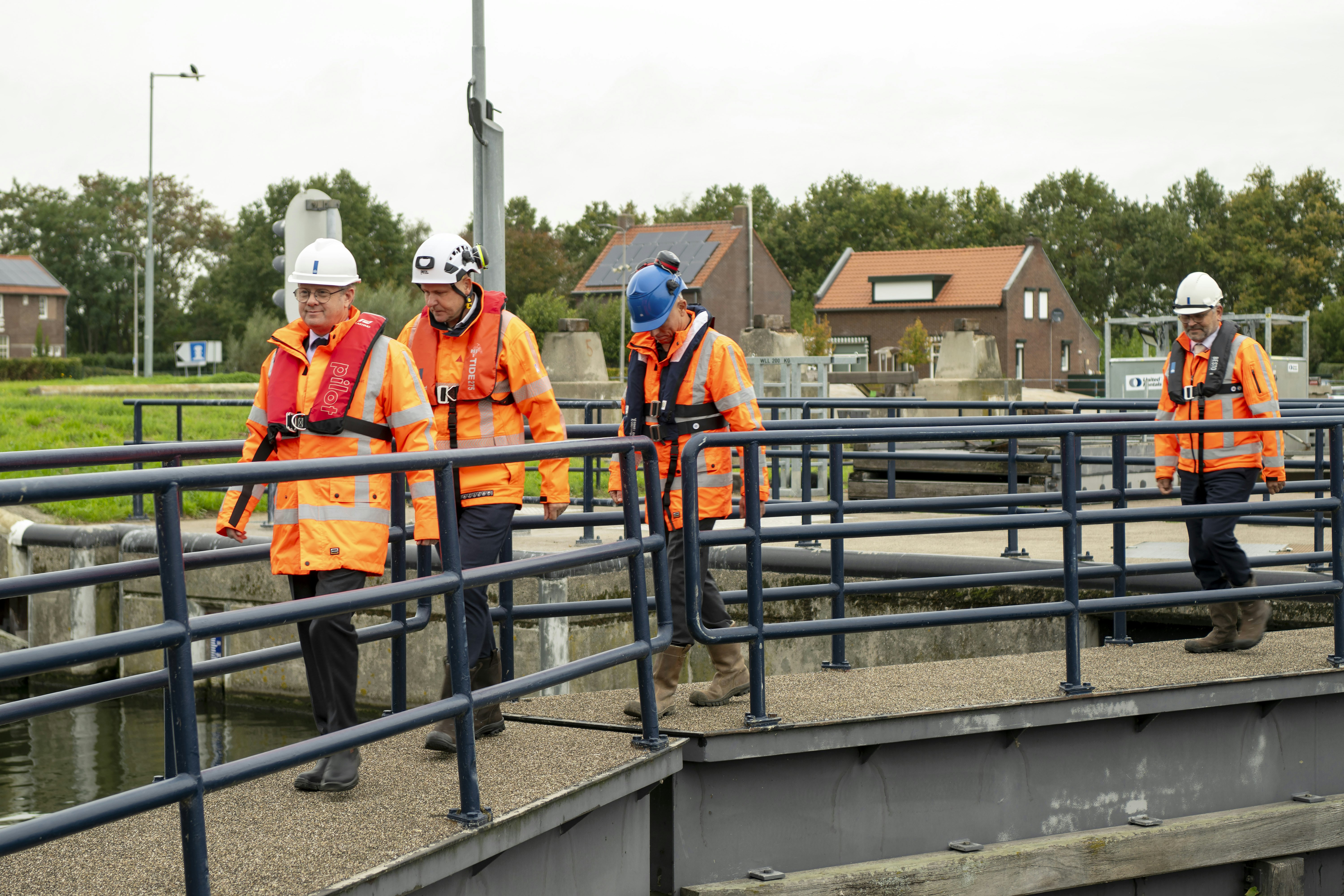 In een open tafelgesprek spraken ze over de aanpak, de uitdagingen en het vakmanschap dat bij dit grote project komt kijken. Ook werd het bouwbord bij sluis Panheel onthuld en nam minister Tieman de tijd om met partners en betrokkenen in de regio in gesprek te gaan.