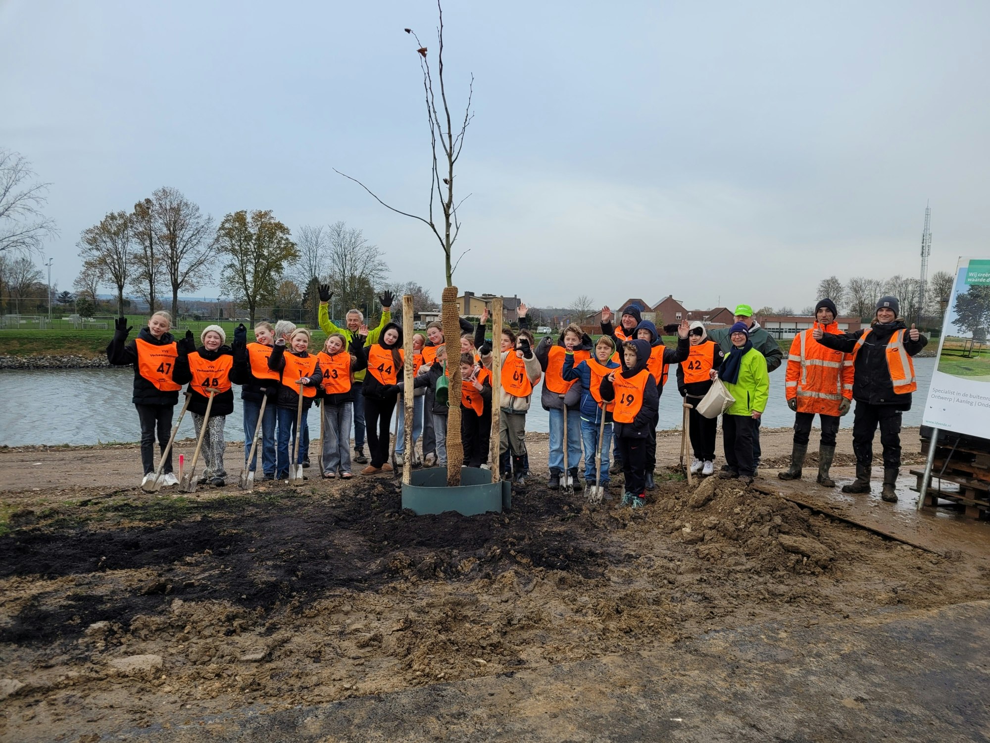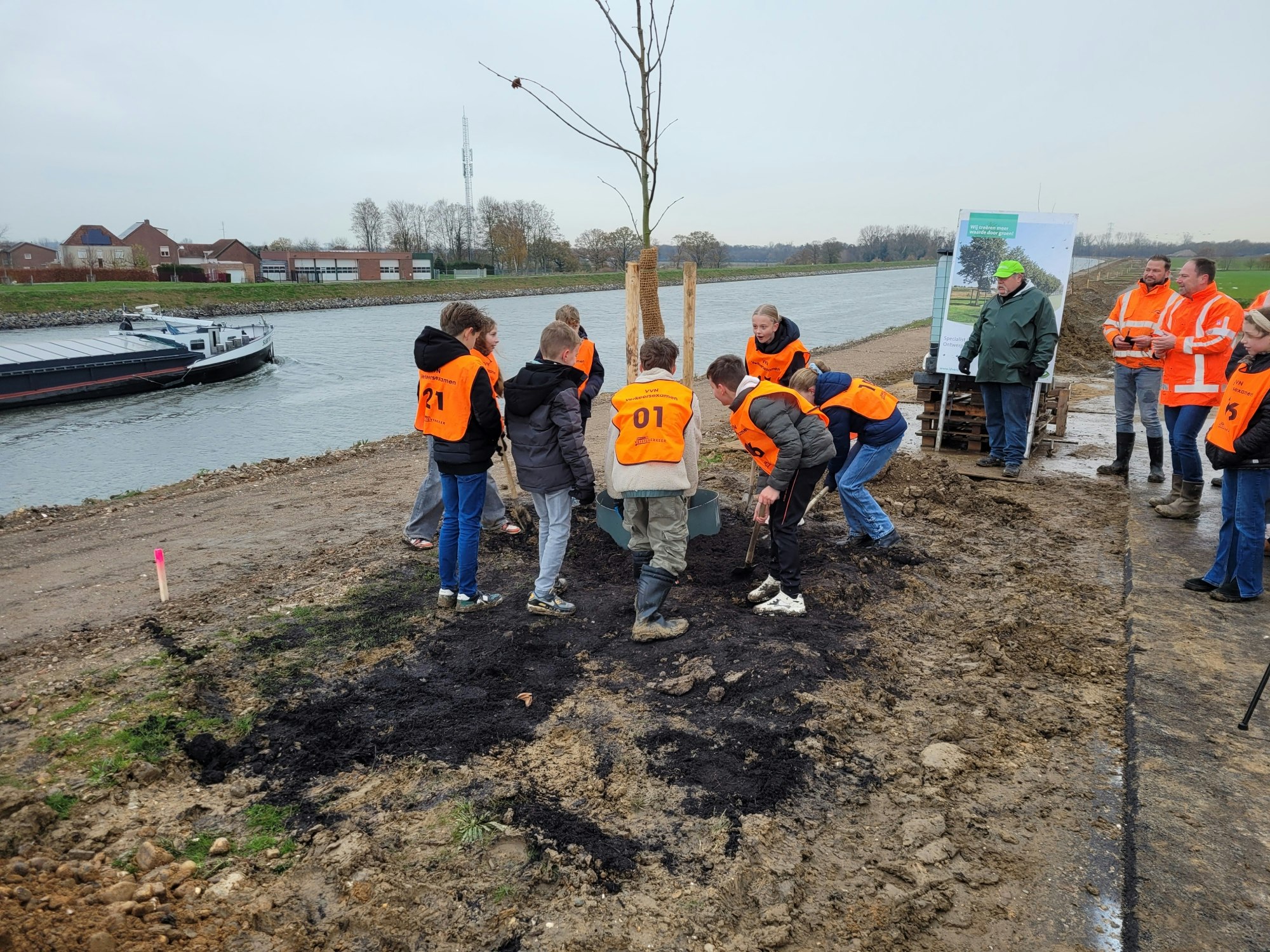 Kinderen van groep 7/8 van basisschool De Avonturijn in Berg aan de Maas staken de handen uit de mouwen om 80 jonge zomerlindes aan te planten langs de dijk van het Julianakanaal. De nieuwe bomen vormen een mooie rij langs de onlangs vernieuwde Oostelijke Kanaalweg.