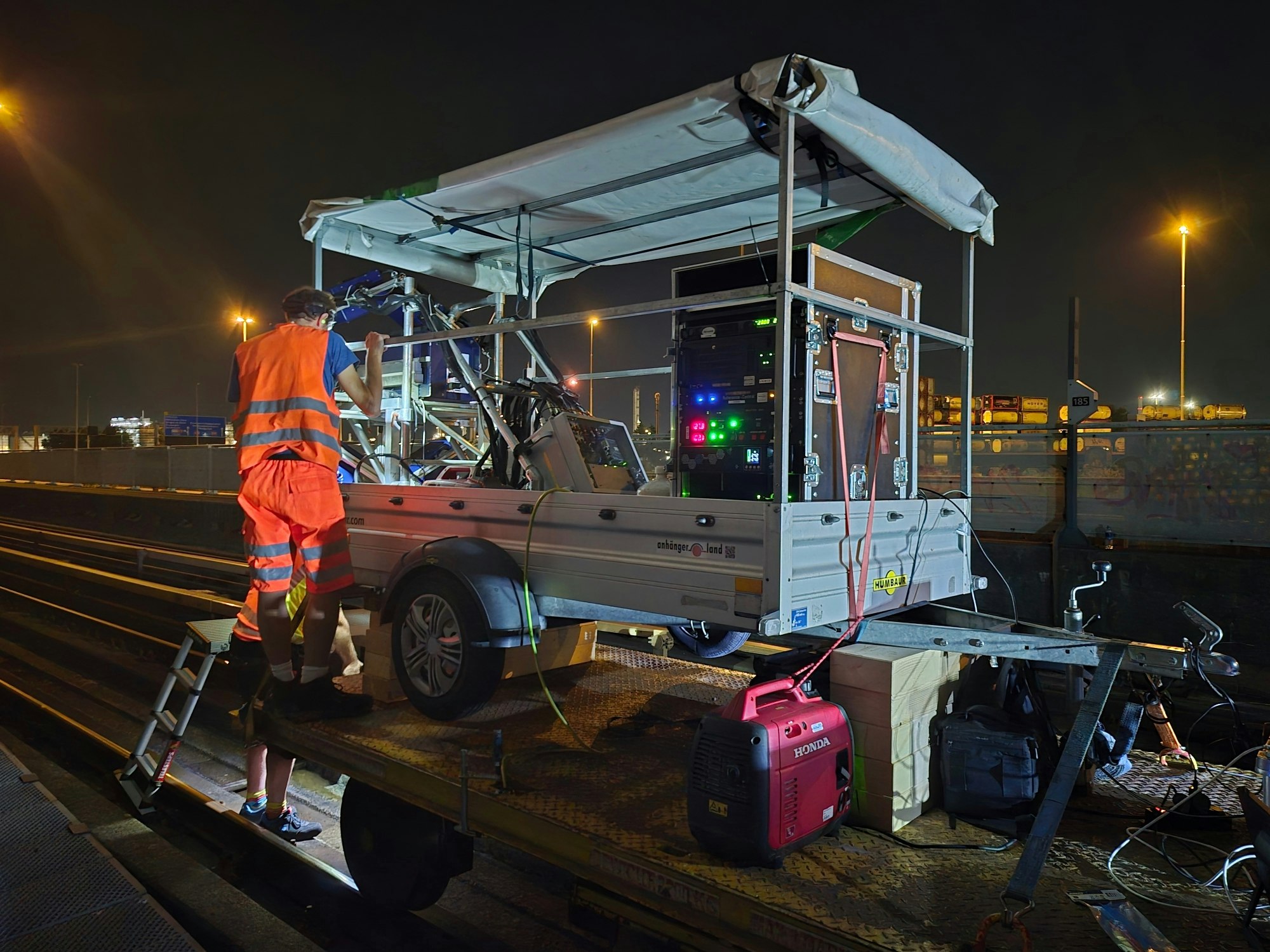 De warmste Rotterdamse dag van het jaar was amper achter de rug. Terwijl de hitte nog nazinderde, werd in de nacht van 1 op 2 juli 2025 vlakbij de metroremise Waalhaven een aanhanger met scanapparatuur bovenop een spoorlorrie gehesen.