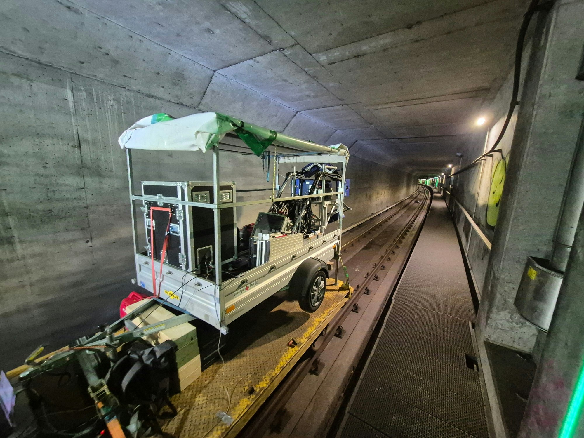 Om die reden ging in de nacht van 1 op 2 juli 2025, en de nacht erna, de treinlorrie met een 3D-laserscanner en een reeks fotocamera’s met 1,5 km/h door de Tweede Beneluxtunnel. De scanner genereerde continu een driedimensionale puntenwolk en thermografische opnames, terwijl de camera’s periodiek foto’s maakten.
