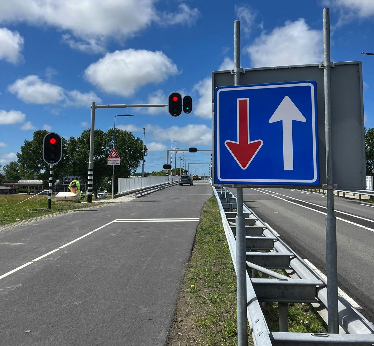 Het tegemoetkomend verkeer op de Touwslagersweg kan elkaar nu niet meer passeren (met uitzondering van fietsers en brommers). Om het verkeer in goede banen te leiden zijn aan beide zijden van de Touwslagersweg verkeerslichten geplaatst, zodat alle weggebruikers veilig de landbouwbrug kunnen oversteken.