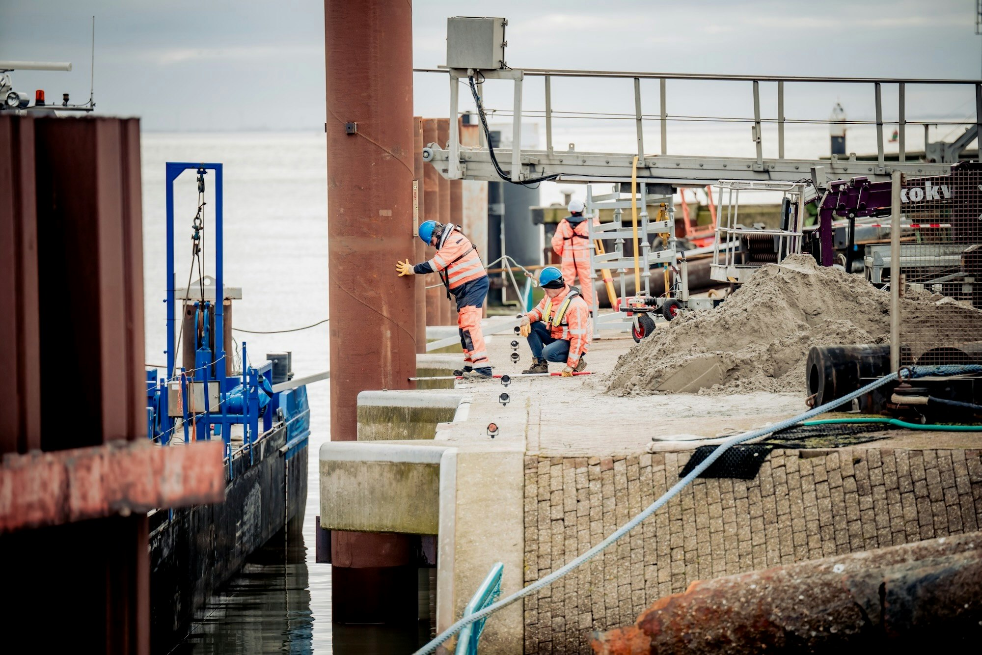 De zes nieuwe ijzeren palen zijn niet verankerd aan de kade, maar diep in de ondergrond geplaatst. Zo kunnen ze een klein beetje meebewegen met de krachten van de veerboot en gaan ze langer mee dan de oude palen. Door de weersomstandigheden begin januari 2026 begonnen de werkzaamheden later dan gepland. Dit heeft geen vertraging opgeleverd.