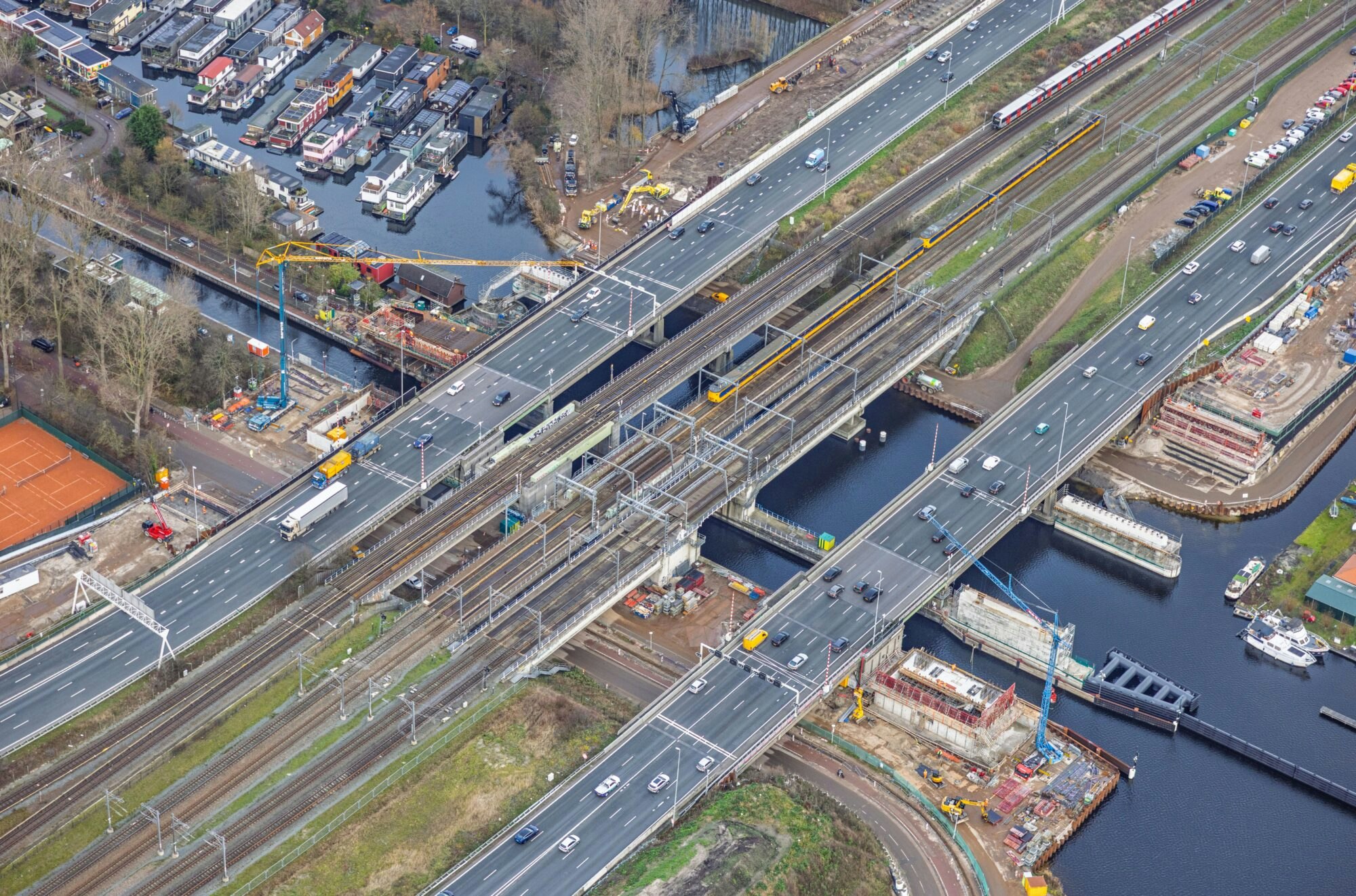 Over de nieuwe brug rijdt straks het verkeer met bestemming Amsterdam. Ook in de andere richting komen twee extra rijstroken. De verbreding van de weg zorgt voor een verbetering van de doorstroming en de verkeersveiligheid.