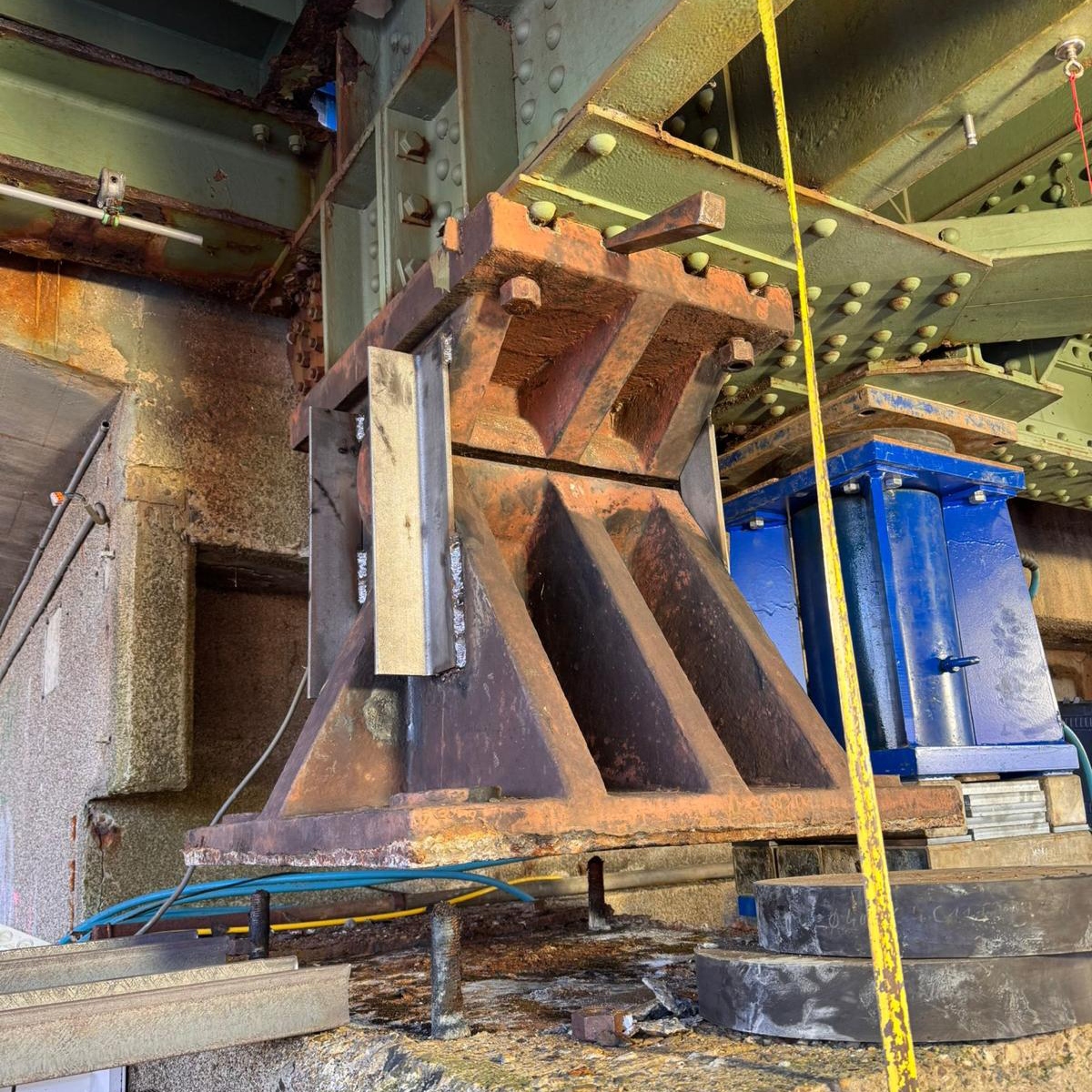De brug, met een gewicht van maar liefst 480.000 kg, is met uiterste precisie recht omhooggetild. Dat gebeurde met vier hydraulische vijzelpotten. Door millimeter voor millimeter omhoog te bewegen, is de brug veilig en succesvol op de tijdelijke hoogte geplaatst. Daarna hebben we de brug veilig vastgezet tijdens de kerstvakantie. Op de foto’s is duidelijk te zien dat de brug in slechte staat was.