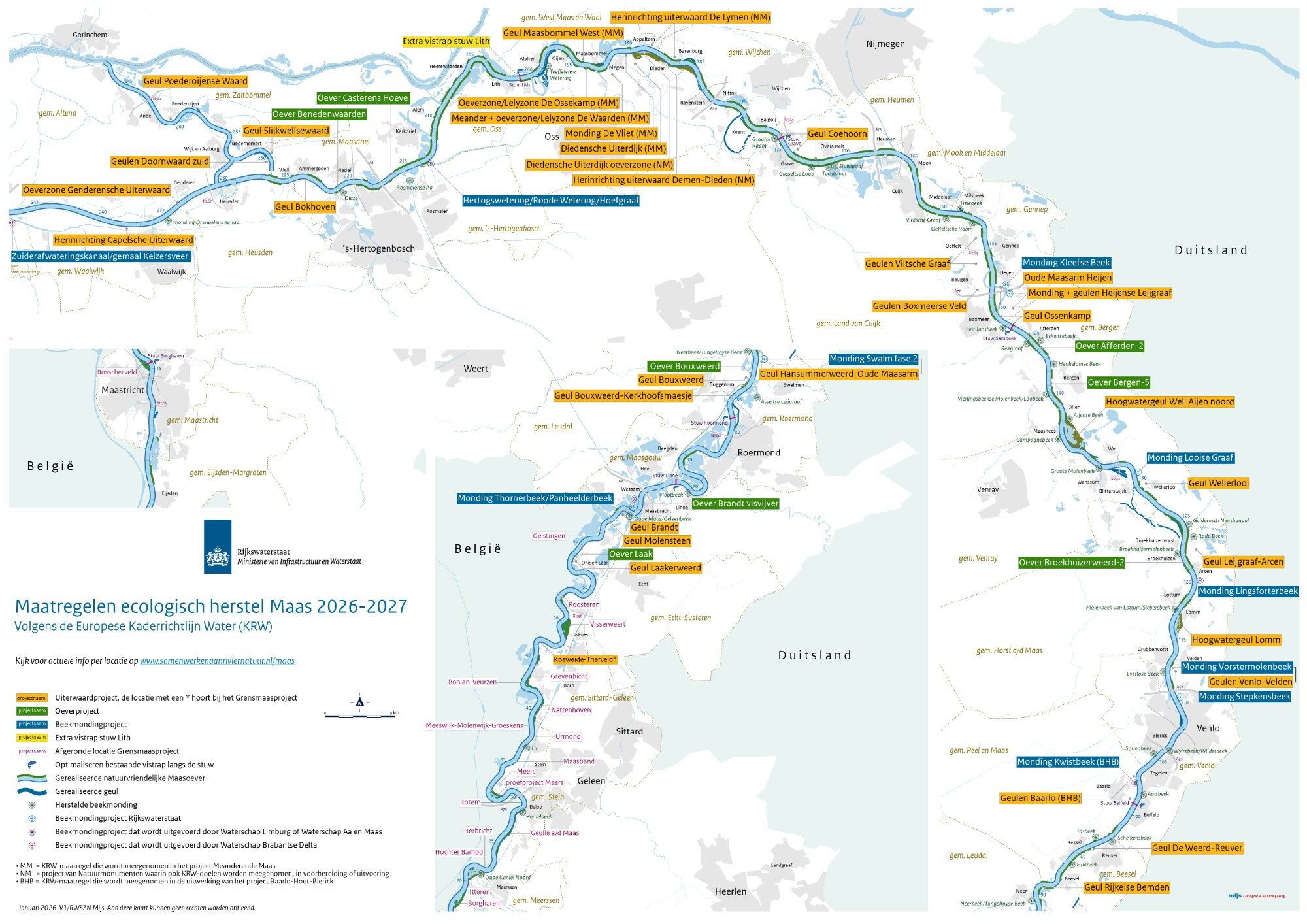 Kijk op de website Samenwerken aan riviernatuur voor alle KRW-maatregelen die bij de Maas in voorbereiding of uitvoering zijn.