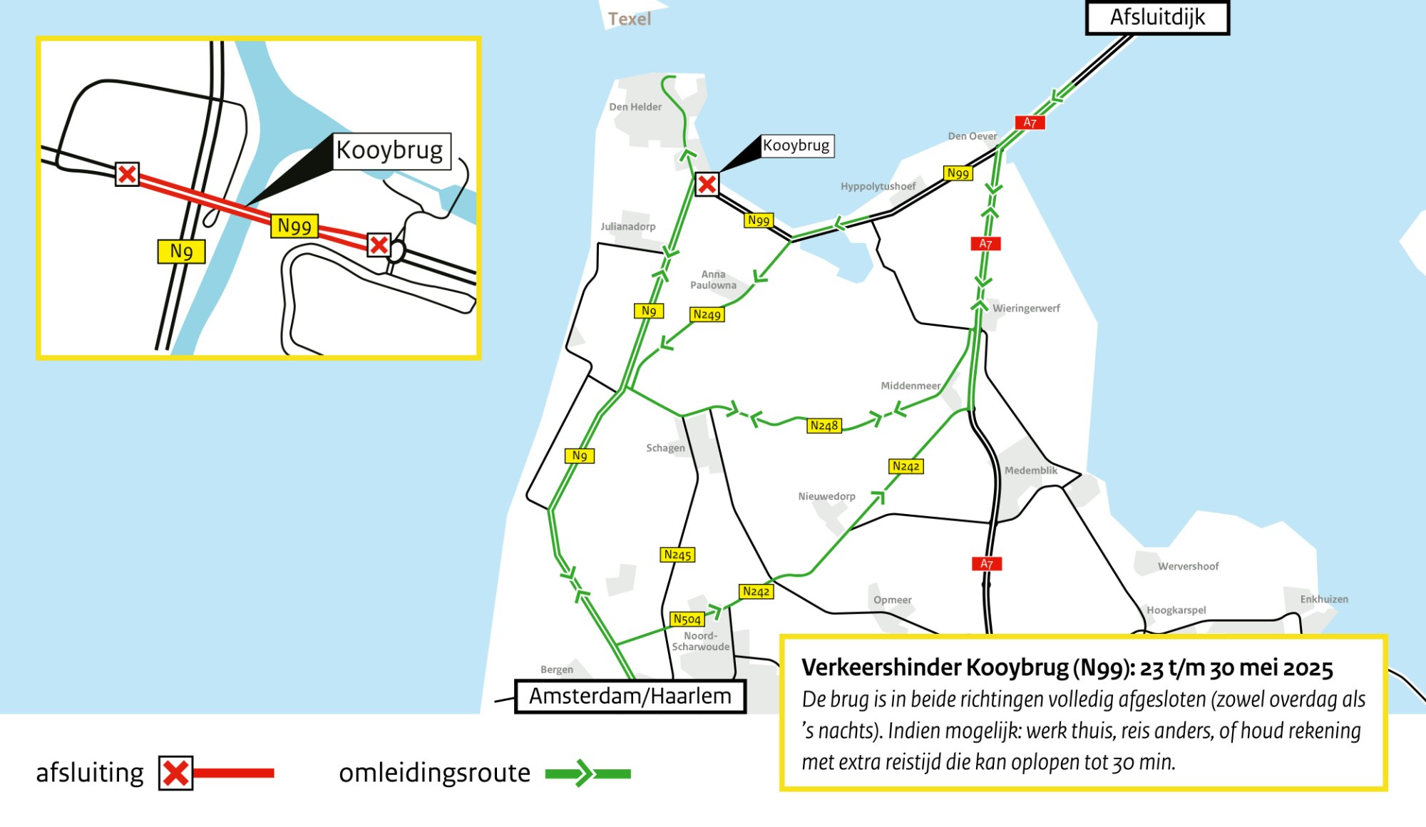 De autoweg N99 loopt van Den Oever bij de Afsluitdijk tot De Kooy bij Den Helder en verbindt de A7 en N9 met elkaar.